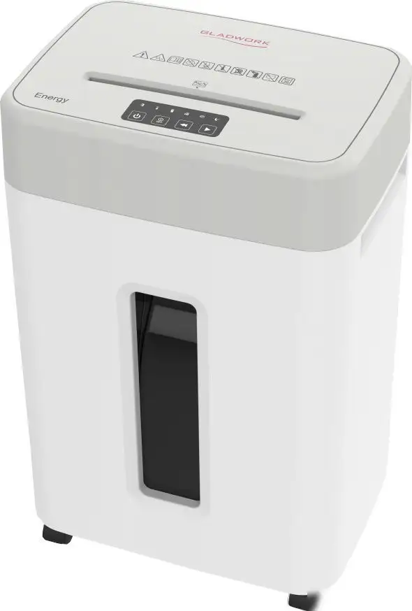 Этот офисный шредер Gladwork Energy P-25CD предназначен для уничтожения документов с уровнем секретности 4. Он использует перекрёстное резание с частицами 4x39 мм, обеспечивая безопасное уничтожение. Встроенная электронная система управления с светодиодной индикацией помогает удобно контролировать работу устройства, а индикатор полной корзины показывает необходимость очистки. Емкость корзины составляет 35 литров, что позволяет редко производить обслуживание. Скорость уничтожения достигает 35 метров в минуту, а рабочий цикл – 60 минут. Эта модель легко справляется с пластиковыми картами, CD/DVD и скрепками. Она работает в непрерывном режиме, что удобно при больших объёмах документов. Размеры устройства — 290 мм в длину, 400 мм в ширину и 627 мм в высоту, весит 12,5 кг, что позволяет легко перемещать его по офису. Для безопасности есть функция автостарт/автостоп, а также реверс, предотвращающий застревание бумаги.