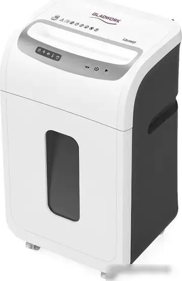Шредер Gladwork Laureat P-25HCD предназначен для офиса и обеспечивает безопасность секретных документов с уровнем секретности 4. Он режет бумаги перекрестным способом с частицами размером 5x12 мм, что усложняет восстановление информации. Устройство вводится вертикальной загрузкой шириной 225 мм и работает в кратковременном режиме до 20 минут. Емкость корзины составляет 27 литров, что позволяет реже её опустошать. Скорость уничтожения составляет 2.4 метра в минуту, а уровень шума — 60 дБ, что делает его комфортным в использовании. Встроенные функции защиты, такие как защита от затора и перегрева, увеличивают надежность работы. Электронное управление с светодиодной индикацией показывает нагрузку, полную корзину и состояние устройства. Шредер также уничтожает пластиковые карты, CD и DVD диски, а наличие реверса помогает при застревании бумаги. Его размеры — 360x286x602 мм, а вес — 6.7 кг, что делает его удобным и компактным для офиса. В целом, это устройство сочетает простоту использования, высокую безопасность и надежность.