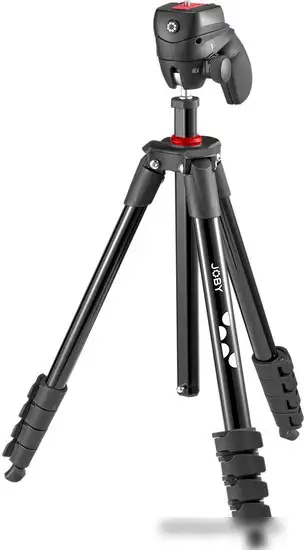 Трипод Joby Compact Action подходит для фотоаппаратов весом до 1,5 кг. Он имеет пять секций и складывается, что удобно для транспортировки и хранения. Трипод оснащен регулируемой головкой по двум осям, которая помогает точно настроить угол съемки. Благодаря резьбовому креплению 1/4" вы можете легко установить большинство камер. Устройство регулирует наклон и поворот, обеспечивая стабильное кадрирование. Есть встроенный жидкостный уровень для проверки горизонта. На ножках расположены резиновые наконечники для устойчивости на разных поверхностях. В комплекте идет чехол, который защитит трипод при переноске. Максимальная высота трипода 1555 мм, он весит всего 1.16 кг и легко помещается в сумке или рюкзаке.