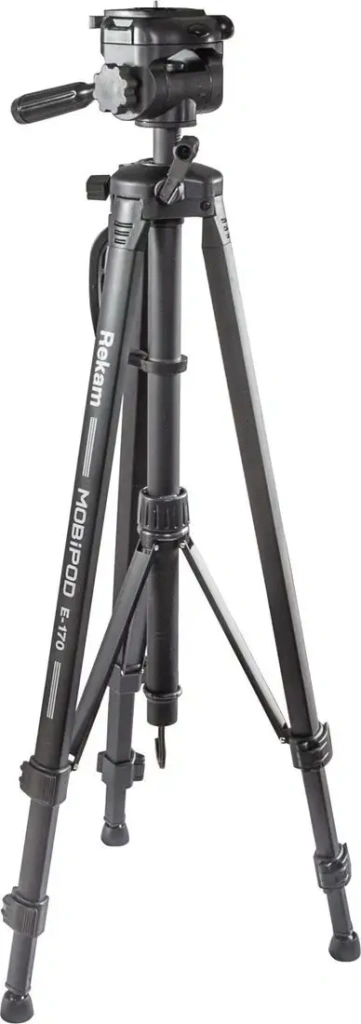 Трипод Rekam MOBIPOD E-170 предназначен для использования с фотокамерами и смартфонами. Он выполнен из металла и имеет черный цвет, что делает его прочным и стильным. Штатив содержит три секции и регулируется по высоте от 600 мм до 1690 мм, что помогает выбрать нужную высоту для съемки. Его регулируемая головка с функцией 3D позволяет удобно менять угол и направление снимков. Трипод оснащен жидкостным уровнем для точного выравнивания. Каждая ножка оснащена резиновыми наконечниками для надежной опоры, а также есть крюк для дополнительного груза, чтобы укрепить штатив на ветру или неровной поверхности. Складная конструкция облегчает транспортировку и хранение, а в комплекте идет держатель для смартфона, сумка- чехол и руководство. Максимальная нагрузка штатива — 6 кг, что подходит для большинства фотоустройств и смартфонов. Вес штатива — 1,44 кг, он удобно лежит в руке и легко транспортируется. Это универсальный штатив, который поможет вам делать стабильно качественные снимки в различных условиях.