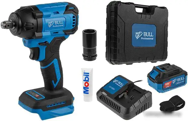 Гайковерт Bull SC 1804 работает на аккумуляторе, что позволяет использовать его без проводов и с лёгкостью работать в любых местах. Он оснащён мощным бесщеточным двигателем, обеспечивающим высокую скорость вращения до 2800 об/мин и крутящий момент до 400 Н·м, что помогает быстро закрутить или открутить болты. В комплект входит аккумулятор ёмкостью 4 А·ч и зарядное устройство, а также кейс для удобного хранения и перевозки. Гайковерт имеет подсветку для работы в тёмных местах и индикатор уровня заряда аккумулятора. Он обладает функцией реверса для лёгкого откручивания. Особенно удобно, что инструмент лёгкий — всего 1320 г, и при этом хорошо сбалансирован. Это делает его хорошим выбором для домашних и профессиональных задач.