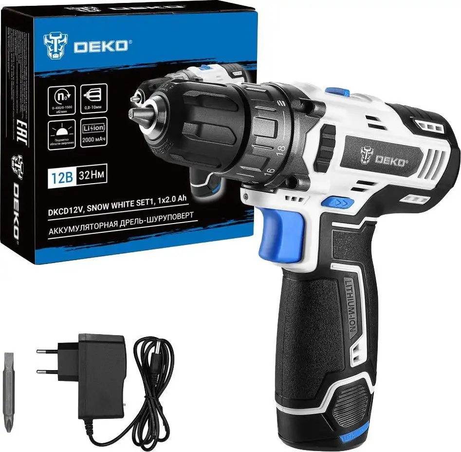 Дрель-шуруповерт Deko DKCD12V Snow White Set1 083-1106 (с 1-им АКБ)
