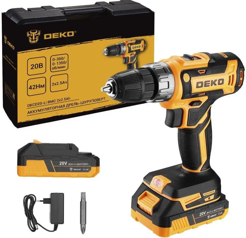 Дрель-шуруповерт Deko DKCD20-Li 085-1123 (с 2-мя АКБ, кейс)