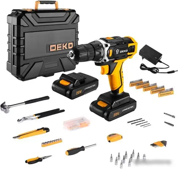 Дрель-шуруповерт Deko DKCD20FU-Li SET 195 063-4135 (с 2-мя АКБ, кейс, набор оснастки)