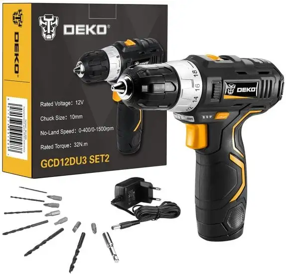 Дрель-шуруповерт Deko GCD12DU3 SET 2 063-4146 (с 1-им АКБ, набор оснастки)