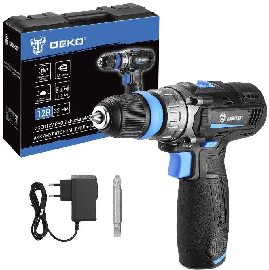 Дрель-шуруповерт Deko ZKCD12V PRO 084-1013 (с 2-мя АКБ, кейс)