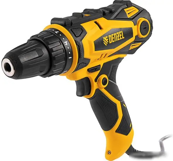 Дрель-шуруповерт Denzel SD-300-10 — это удобный инструмент с мощностью 300 Вт, который отлично подходит для домашних и бытовых задач. Он работает от электросети и имеет длину кабеля 3 метра, что обеспечивает свободу движений. В устройстве есть быстровзажимной патрон, позволяющий быстро менять насадки, и две скорости вращения для разной работы. Максимальный крутящий момент — 40 Н·м, что помогает справляться с разнообразными материалами. Максимальный диаметр сверления в дереве — 20 мм, в металле — 10 мм, что достаточно для большинства домашних проектов. Также есть подсветка для удобства работы в тёмных местах и возможность регулировки скорости вращения. Нескладной дизайн и небольшой вес в 1580 г делают этот инструмент удобным и простым в использовании.