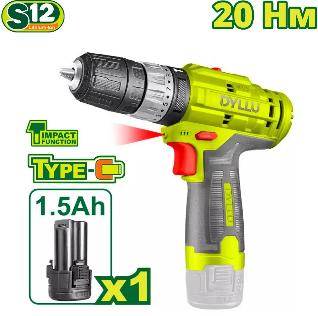 Ударная дрель-шуруповерт Dyllu DTCDS540 (с 1-им АКБ)