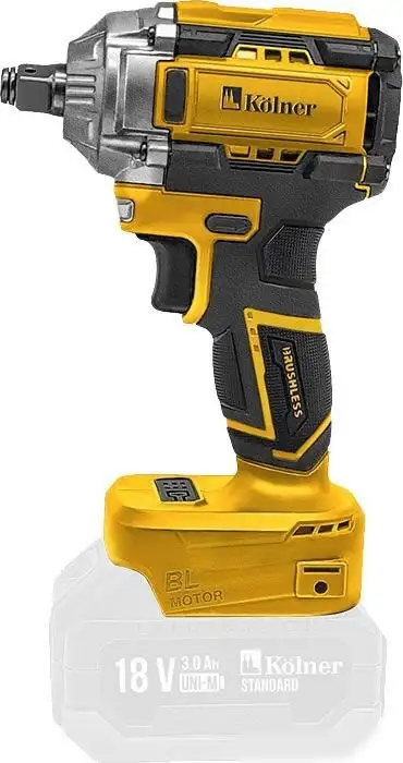 Гайковерт Kolner 18-280BLV — это удобный инструмент для выполнения различных задач. Он работает от аккумулятора 18 В, хотя в комплекте его нет, поэтому нужно приобрести отдельно. Устройство имеет скорость вращения до 2200 об/мин и высокий крутящий момент до 350 Н·м, что помогает быстро справляться с toughest задачами. В гайковерте есть подсветка, которая делает работу в темных местах удобнее. Благодаря бесщеточному двигателю он более долговечен и экономит энергию. Также есть реверс для обратной регулировки. Размеры небольшие, вес около 2,2 кг — инструмент легкий и удобный.