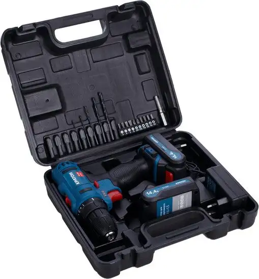 | Комплектация | 1. Дрель-шуруповерт - 1 шт. 2. Зарядное устройство - 1 шт. 3. Батарея аккумуляторная Li-ion, 14 В, 1,5 А·ч - 2 шт. 4. Сверло HSS ? 1,5; 2,5; 3; 4; 5; 6 мм - 6 шт. 5. Держатель бит магнитный, L = 60 мм - 1 шт. 6. CR-V биты (насадки отверточные), 25 мм, 3; 4; 5; 6; PH1;PH2; T15; T20; H4; H5 - 10 шт. 7. Скоба - 1 шт. 8. Винт М3 ? 10 - 1 шт. 9. Гайка М3 - 1 шт. 10. Кейс - 1 шт. |