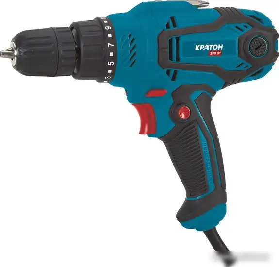 Дрель-шуруповерт Кратон ESDD-280/24 — это удобный и надежный инструмент для работы дома и в мастерской. Он работает от сети и обладает мощностью 280 Вт, что позволяет легко сверлить металл до 10 мм и дерево до 20 мм. Устройство имеет быстрозажимной патрон от 0.8 до 10 мм и регулируемую скорость с одним режимом, а также 24 ступени регулировки крутящего момента, что помогает точно выполнять разные задачи. В комплект входят насадки-отвертки и инструкция, всё удобно хранить в коробке. Этот инструмент не оснащён реверсом и подсветкой, но легко управляется за счет фиксации кнопки включения. Он легкий — всего 1330 г, и его длина составляет 240 мм, что делает работу комфортной.