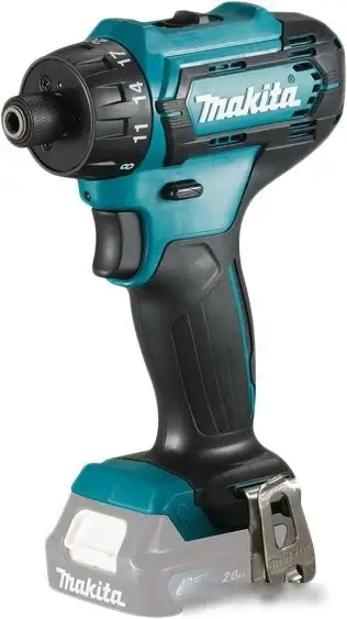 Винтоверт Makita DF033DZ подходит для выполнения различных строительных и ремонтных работ. Он работает на аккумуляторе Li-ion напряжением 12 В с емкостью 2 А·ч, что обеспечивает длительную работу без соединения с сетью. Винтоверт оснащен шестигранным патроном 1/4", что позволяет быстро менять насадки и сверла. Максимальная скорость вращения достигает 1700 об/мин, а в первой скорости — 450 об/мин, что помогает выбрать нужный режим для каждого задания. Максимальный крутящий момент составляет 30 Н·м, а мягкий — 14 Н·м, что дает контроль при работе с различными материалами. Устройство имеет два режима скорости и 20 ступенчатую регулировку крутящего момента. Подсветка позволяет работать в темных местах, а реверс помогает закручивать и выкручивать винты. Винтоверт легкий и компактный: его длина 149 мм, вес всего 700 г. Он подходит для работы без фиксированной кнопки включения, что делает использование удобнее.