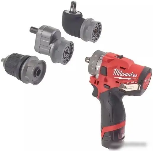 Это ударная дрель-шуруповерт Milwaukee M12 FPDXKIT-202X. Она работает на аккумуляторах, что делает её удобной для работы без проводов. У дрели есть быстрозажимной патрон с диаметром 13 мм, который легко меняется. Скорость вращения регулируется в двух режимах и достигает 1700 об/мин, а удары - до 25 500 в минуту, что помогает быстро сверлить и вкручивать. Максимальный диаметр сверления в дереве — 35 мм, в металле — 13 мм. Благодаря бесщеточному двигателю устройство более долговечно и эффективно. В комплект входит два аккумулятора, зарядное устройство, кейс и дополнительные насадки для расширения функций.
