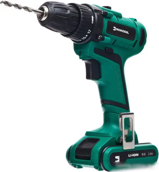 Дрель-шуруповерт Rokodil Twist 2 Pro — это удобный инструмент, который работает от аккумуляторов с напряжением 18 В и ёмкостью 2 А•ч. Он оснащён быстрым патроном, что облегчает смену насадок без дополнительных инструментов. Максимальный диаметр шурупов — 6 мм, а скорость вращения достигает 1400 об/мин, что позволяет быстро закручивать и сверлить. Устройство имеет два режима скорости и регулируемый крутящий момент до 48 Н·м, что делает работу более точной и безопасной. В комплект входит кейс, два аккумулятора, зарядное устройство и разнообразный оснастка, включая сверла и биты. Также есть подсветка для удобства работы в тёмных местах. Эта дрель отлично подходит для домашних и профессиональных задач, так как сочетает мощность, комфорт и универсальность.