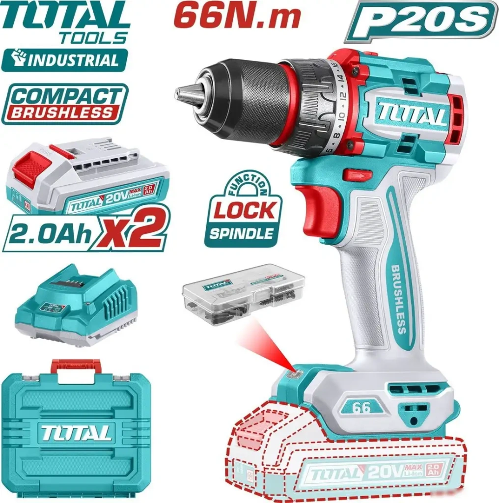 Дрель-шуруповерт Total TDLI20668 (с 2-мя АКБ, кейс)