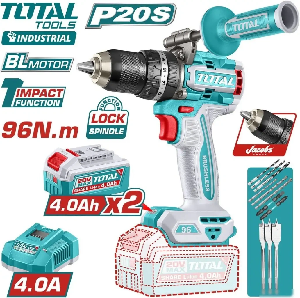 Ударная дрель-шуруповерт Total TIDLI209686 (с 2-мя АКБ, кейс)