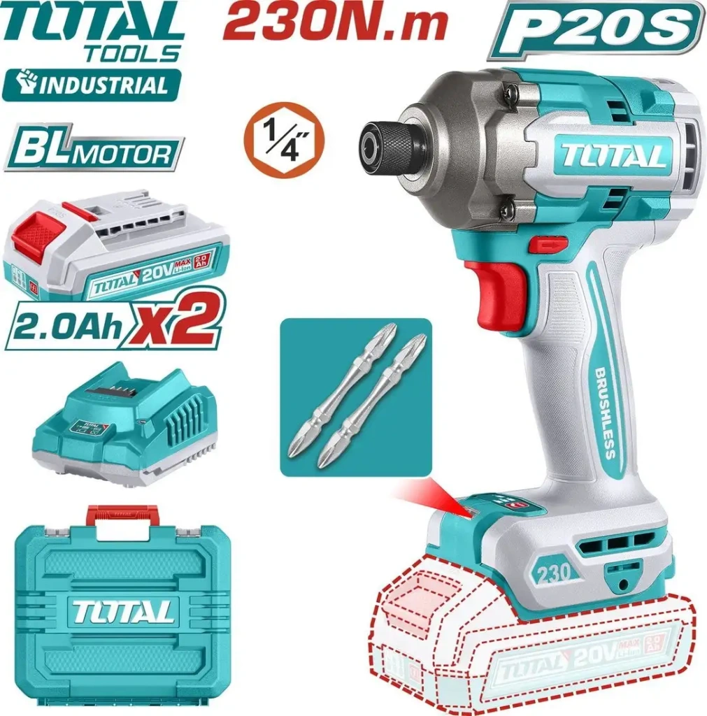 Винтоверт Total TIRLI2023 — это мощное устройство с бесщеточным двигателем, которое легко справляется с разнообразными задачами. Он работает на аккумуляторах Li-ion ёмкостью 2 А•ч, что обеспечивает долгую работу без подзарядки. Винтоверт имеет патрон шестигранный 1/4", который быстро меняется без специальных инструментов, и регулирует скорость с помощью трех режимов. Максимальный крутящий момент достигает 230 Н·м, а скорость вращения — до 2900 об/мин, что помогает выполнять работу быстро и легко. Оснащён подсветкой для удобства в темных местах и реверсом для отворачивания. Устройство подходит как для домашнего, так и для профессионального использования. В комплект входит кейс для хранения, два аккумулятора и зарядное устройство, что позволяет работать долго без перерывов. Такой винтоверт станет надежным помощником в строительстве, ремонте и монтажных работах.