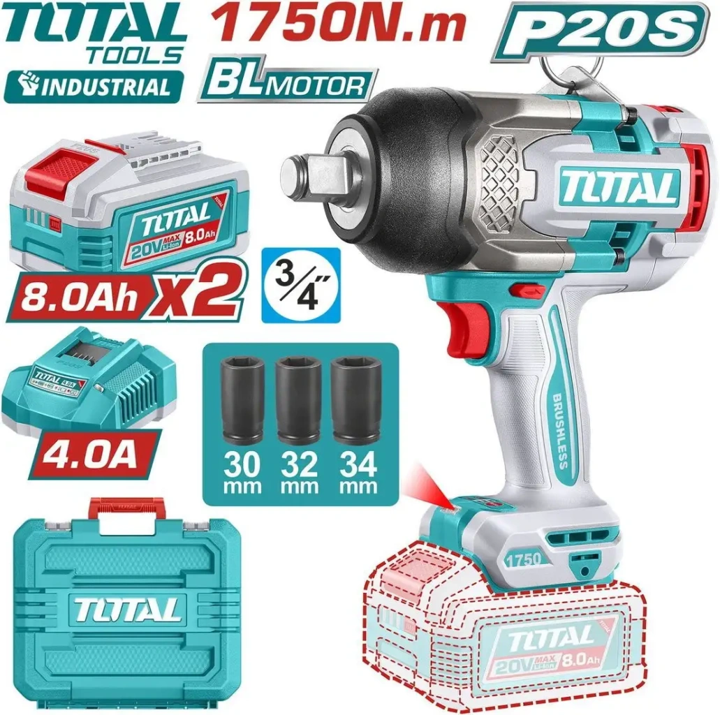 Гайковерт Total TIWLI20175 (с 2-мя АКБ, кейс)