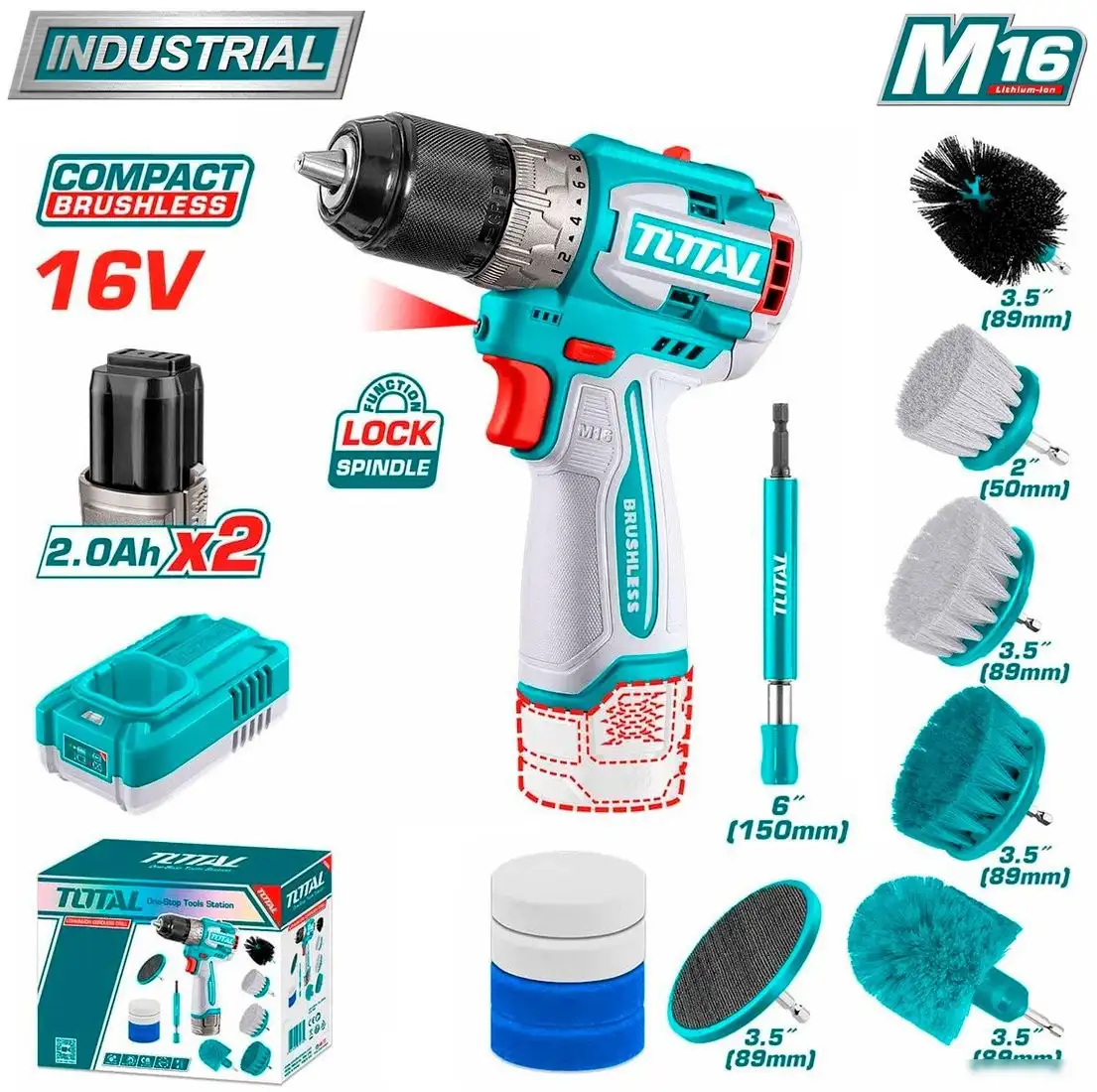 | Комплектация | - Аккумулярторная дрель-шуруповерт - 1 шт. - Аккумулятораная батарея TFBLI1620 2,0 Ач - 2 шт. - Зарядное устройство TFCLI1613 1,3 А - 1 шт. - Удлинитель 150 мм - 1 шт. - Щетки - 11 шт. - Инструкция; - Коробка. |