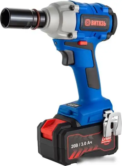 Гайковерт Витязь ГА-424-1 — это мощный инструмент, который работает на двух аккумуляторах типа Li-ion с напряжением 20 В. Он имеет четырёхгранный патрон и достигает скорости вращения до 1600 об/мин, а также ударную частоту до 2100 ударов в минуту, что помогает быстро и эффективно выполнять работу. Крутящий момент составляет 400 Н·м, поэтому гайковерт хорошо справится с крепками и болтами разной сложности. Устройство оснащено подсветкой для удобной работы в плохо освещённых местах и индикатором уровня заряда аккумулятора. Он легко регулируется по скорости и работает в реверсе, что делает его универсальным и удобным. В комплект входит кейс с органайзером, а также дополнительный аккумулятор и зарядное устройство. Вес гаджета — 2 килограмма, что делает его достаточно лёгким для долгой работы без усталости.