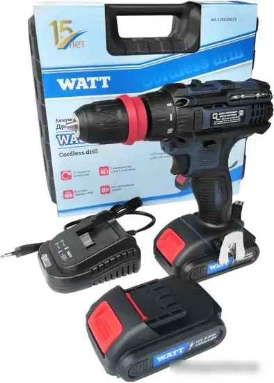 Дрель-шуруповерт WATT WAS-18Li-3 1.018.030.23 (с 2-мя АКБ, кейс)
