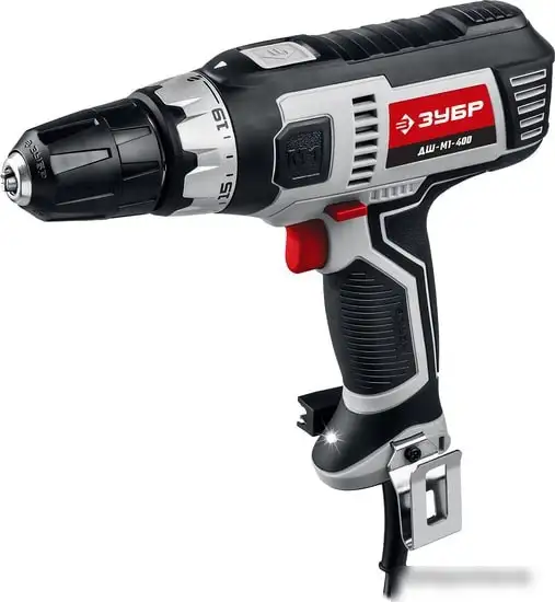 Дрель-шуруповерт Зубр ДШ-М1-400 подходит для домашних и простых ремонтных работ. Мощность двигателя составляет 400 Вт, что обеспечивает достаточную силу для сверления и закручивания. Она работает с быстрозажимным патроном от 0,8 до 10 мм, что удобно для смены насадок. Скорость вращения достигает 750 об/мин, а крутящий момент — 28 Н·м, что позволяет выполнить разные задачи. Регулировка крутящего момента включает 20 ступеней, чтобы избегать повреждения деталей. В устройство встроена подсветка, которая помогает работать в темных местах. Реверс помогает выкручивать шурупы и фиксировать механизм. Предохранительная муфта защищает от чрезмерных нагрузок. В комплект входит битодержатель, поясная скоба и руководство. Дрель отличается компактными размерами и весом около 1,3 кг, что делает её удобной для работы без усталости.