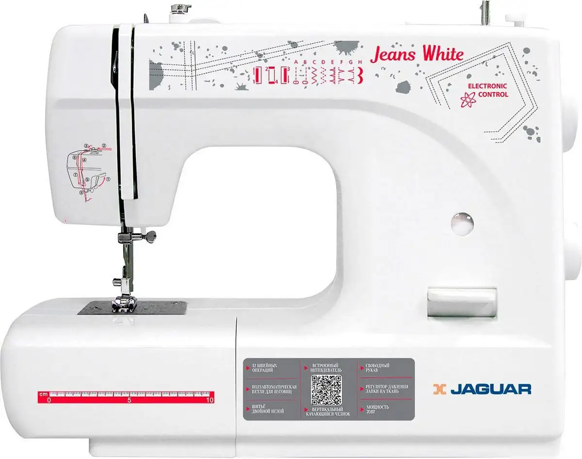 Электромеханическая швейная машина Jaguar Jeans White предназначена для выполнения различных швейных операций. Она имеет вертикальный качающийся челнок и полуавтоматическую функцию выполнения петли, что облегчает работу. Машина поддерживает 12 видов швов, включая декоративные и трикотажные, и позволяет регулировать ширину (до 5 мм) и длину стежка (до 4 мм), чтобы добиться нужного результата. Есть нитевдеватель, реверс для закрепления швов и регулировка давления лапки, что помогает шить более точно. В комплект входит универсальная лапка и иглы, что делает работу удобнее.