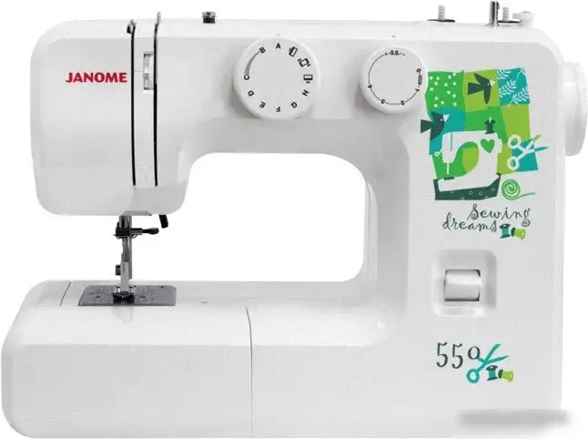 Швейная машина Janome 550 — это электромеханическая модель с вертикальным качающимся челноком. Она выполняет полуавтоматическую обметку петель и предлагает 15 видов строчек, включая декоративные и потайные. Машина позволяет регулировать длину стежка до 4 мм и максимально ширину до 5 мм. Она оснащена реверсом для обратной строчки и рукавной платформой для удобной обработки деталей. Машина не имеет регулировки давления лапки и нитевдевателя, но поставляется с универсальными и специальными лапками для вшивания молний и обметки петель. Для работы используются стандартные универсальные иглы. Машина имеет классический белый цвет, подходит для различных швейных проектов и легко управляется.