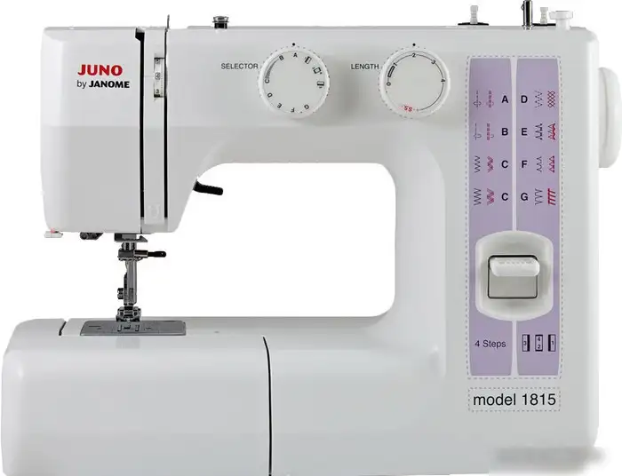 Швейная машина Janome Juno 1815 — это простая и удобная модель для дома. Она выполняет 13 видов строчек, включая декоративные и оверлочные, что позволяет создавать разные изделия. Машина работает на электромеханической системе с вертикальным качающимся челноком, что обеспечивает надежность шитья. Для комфортной работы есть функциями регулировки длины стежка и реверс. Максимальная ширина стышка — 5 мм, а длина — 4 мм. В комплекте идут лапки для вшивания молнии, обработки петель и потайных швов, а также универсальные иглы. Машина хорошо шьет на трикотаже, ткани и джинсе, а мягкий чехол защищает ее от пыли и повреждений. Рукавная платформа облегчает работу с небольшими и труднодоступными участками. Такая швейная машина подходит для начинающих и тех, кто ценит простоту и функциональность.