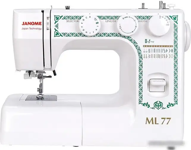 Швейная машина Janome ML 77 — это простая и надежная модель, которая отлично подойдет для домашних швейных проектов. В ней есть 25 видов строчек, включая оверлочную, потайную и трикотажную, что позволяет создавать разные изделия. Машина работает автоматически при выполнении петли, а также регулируется по ширине и длине стежка, чтобы добиться нужного результата. Она оснащена нитевдевателем и рукавной платформой для удобства обработки мелких деталей. В комплект входят универсальные лапки для вшивания молний и обметки петель, а также иглы.