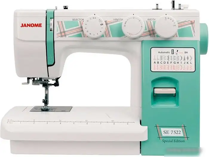 Швейная машина Janome SE 7522 — это электронная модель, которая легко справляется с разными швейными задачами. Она выполняет автоматическую ручную петлю и предлагает 25 видов строчек, включая декоративные и эластичные. Машина позволяет регулировать ширину (до 5 мм) и длину стежка (до 4 мм), что помогает добиться точных результатов. В нее встроен нитевдеватель для более комфортной работы и реверс для закрепления шва. Вы можете регулировать давление лапки для шитья различных тканей и использовать рукавную платформу для удобной обработки узких деталей. В комплекте идут разные лапки — универсальная, для вшивания молнии, обметки петель и подрубки, а также иглы. Твердый чехол защитит устройство, а цветовая гамма — белый и бирюзовый, что делает его привлекательным в любой мастерской.