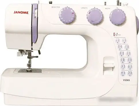 Швейная машина Janome VS 56S — это электромеханическая модель, которая отлично подходит для домашнего шитья. Она оснащена вертикальным качающимся челноком и автоматическим выполнением петли, что делает процесс шитья быстрым и удобным. Эта машина умеет выполнять 22 различных вида строчек, включая оверлочную, потайную и декоративную. Регулировать ширину и длину стежка можно, что помогает создавать разнообразные швы и украшения. В комплекте идут необходимые лапки для вшивания молний, обметывания петель и других задач, а рукавная платформа облегчает работу с узкими и труднодоступными участками. Модель включает мягкий чехол для хранения и защиты устройства, а также нитевдеватель для облегчения намотки нитей. Важно отметить, что давление лапки и регулировки по нему не предусмотрены, что полезно для работы с разными тканями.