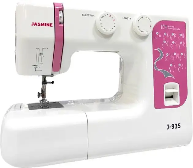 Электромеханическая швейная машина Jasmine J-935 подходит для домашнего использования. Она выполняет 25 швейных операций, включая имитацию оверлочной, потайной, трикотажной и декоративной строчки. Машина позволяет плавно регулировать ширину (до 4 мм) и длину строчки (до 5 мм), что помогает добиться идеальных швов. Она оснащена вертикальным качающимся челноком и реверсом для обратной строчки. Есть рукавная платформа для обработки узких деталей. Машина не имеет нитевдевателя и регулировки давления лапки, что делает её простой в использовании. В комплект входят лапки для вшивания молнии и пришивания пуговиц, а также набор игл, шпульки и отвертки. Вес устройства составляет 6,5 кг, оно удобно переносится. Машина выполнена в белом и розовом цвете, что отлично подойдёт для дома.