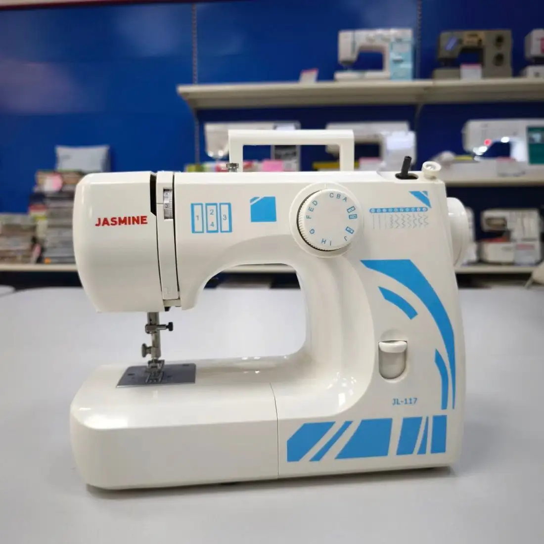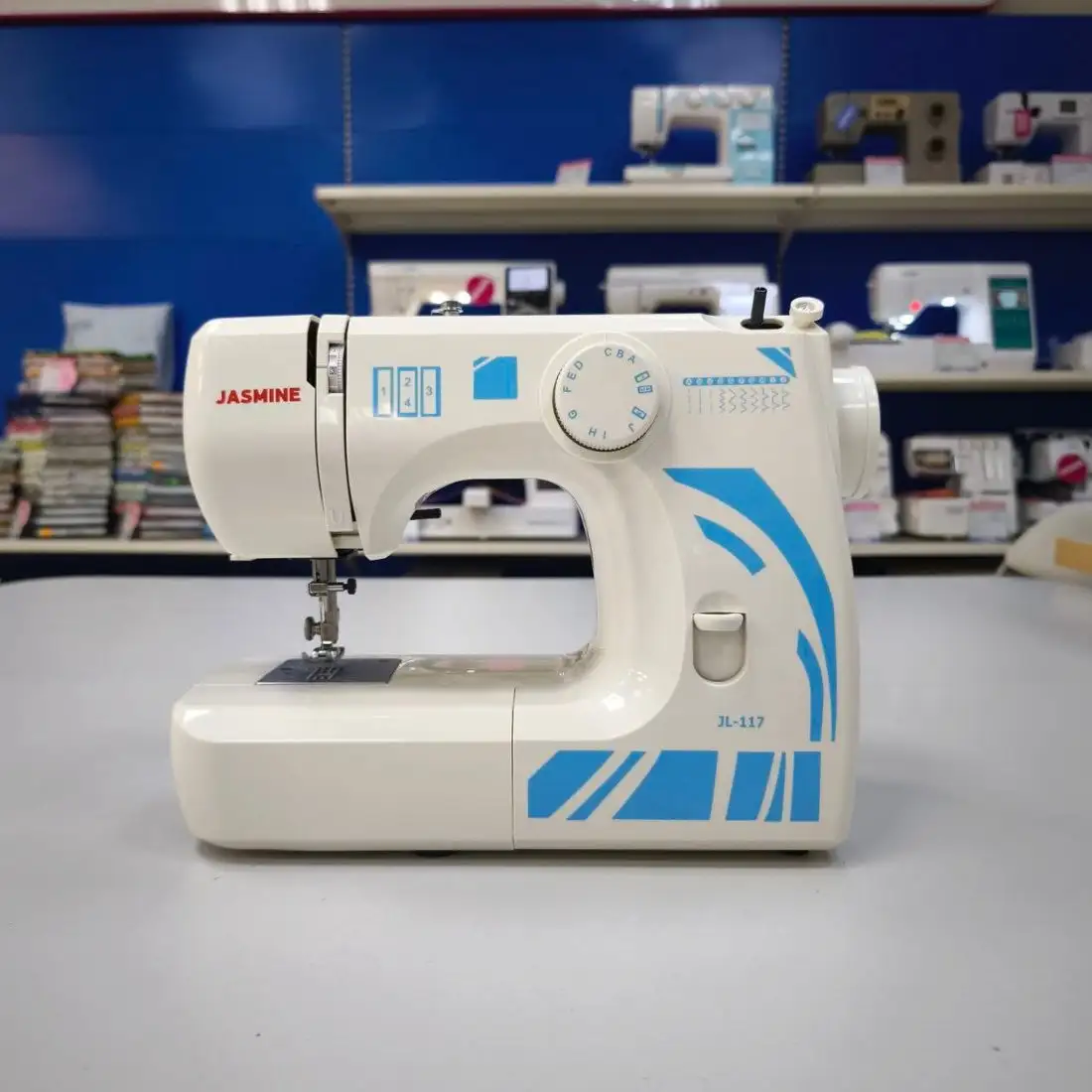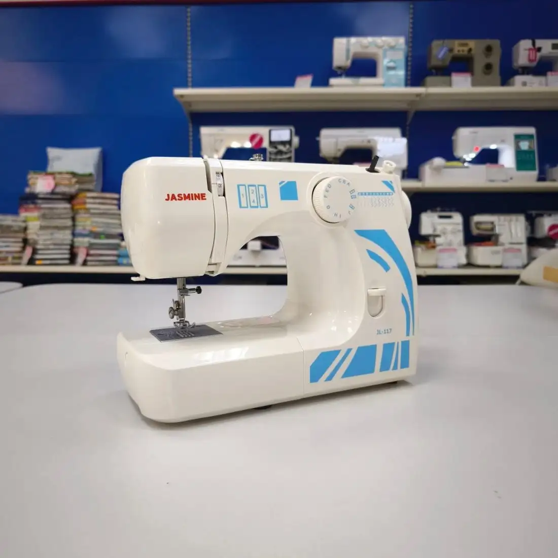 Электромеханическая швейная машина Jasmine JL-117 отлично подходит для домашнего использования. Она выполняет 10 различных швейных операций, включая имитацию оверлочной, потайную, трикотажную и декоративную строчки. Машина работает автоматически на петли полуу画томатической, а ширина и длина стежка регулируются плавно, что обеспечивает точность швов. Максимальная ширина строчки — 5 мм, а длина — 4 мм, для разнообразных швейных задач. В устройстве есть реверс для закрепления шва и рукавная платформа для легкого пошива на труднодоступных участках. В комплект входят насадки для вшивания молнии, иглы, шпульки и вспомогательные инструменты. Простая и легкая в использовании, она удобно управляется и подойдет для создания как простых, так и более сложных изделий. Машина весит всего 5 кг и легко транспортируется. Высокое качество сборки и разнообразие функций делают её хорошим выбором для домашних швей.