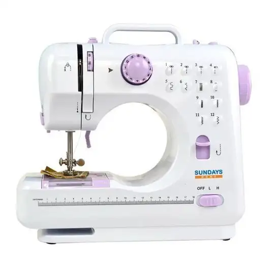 Электромеханическая швейная машина Sundays Home RH-505 — компактное устройство, идеально подходящее для домашнего использования. Она выполняет 12 различных видов строчек, что позволяет шить разные ткани и создавать разнообразные изделия. Машина оснащена нитевдевателем, что упрощает намотку нитки и ускоряет работу. Благодаря наличию реверса, вы можете легко выполнять обратные швы и поправлять стежки. В комплект входят иглы, шпульки, педаль, нитевдеватель и инструкция, что делает работу максимально удобной. Машина выполнена в бело-сиреневом цвете и не занимает много места. Отсутствие регулировки давления лапки делает устройство простым в использовании. Она обладает легким управлением, что подходит даже для начинающих швей. Это надежный помощник для создания домашней одежды и мелких ремонтов.