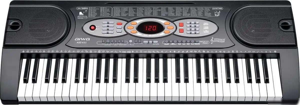Синтезатор Aiwa ASZ-611 предназначен для развлечений и обучения. Его корпус выполнен в черном цвете, а клавиатура состоит из 61 клавиши без разделения. Устройство обеспечивает 16 голосов полифонии, что позволяет играть одновременно несколькими звуками. Встроенные функции включают метроном, автоаккомпанемент и возможность записи музыки. Благодаря разделению клавиш и транспонированию, играть и создавать музыку стало удобнее. В синтезаторе есть 300 встроенных звуковых тембров и цифровые эффекты, что расширяет возможности звучания. В комплект входит микрофон и адаптер питания, а также есть USB-выход для подключения к компьютеру. Устройство оснащено встроенной акустикой и дисплеем для удобства использования. Размеры позволяют легко переносить синтезатор, а питание осуществляется от батареек.