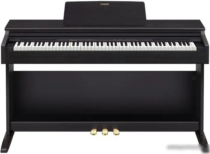 Цифровое пианино Casio Celviano AP-270 в черном цвете отлично подходит для обучения и игры. Эта модель оснащена 88 клавишами с чувствительностью к касанию, что позволяет точно передавать динамику исполнения. Полифония в 192 голоса обеспечивает беспрерывное звучание сложных произведений. Встроенные 22 тембра и возможность наложения голосов позволяют создавать разнообразные звучания. Встроенный метроном и возможность записи песен помогают в практике и композиционной работе. Устройство поддерживает подключение через USB, что удобно для подключения к компьютеру или записи нот. 2 встроенных динамика по 8 Вт создают насыщенное звучание, а разъем для наушников обеспечивает комфортное прослушивание. Педали, входящие в комплект, помогают точнее контролировать игру. Модель также поддерживает изменение высоты тона и использование эффектов реверберации, хору и мульти-эффектов. Благодаря этим функциям, Casio AP-270 становится хорошим выбором для начинающих и любителей играть дома или в студии.