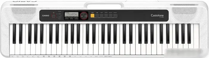 Синтезатор Casio CT-S200 в белом цвете подходит для начинающих музыкантов. Он оснащён 61 клавишей, которые удобно играть и учиться. В устройстве есть 400 различных тембров, благодаря которым можно создавать разные звуки. Автоаккомпанемент с 77 стилями помогает играть в ритме без дополнительных инструментов. Метроном помогает держать такт, а функция транспонирования облегчает настройку тональности. Встроенные эффекты, такие как реверб и эквалайзер, улучшают качество звучания. USB-порт позволяет подключать синтезатор к компьютеру или другим устройствам. Выход на наушники позволяет играть тихо, а встроенная акустика обеспечивает хороший звук. Компактные размеры и небольшой вес делают его легко переносным и удобным для хранения.