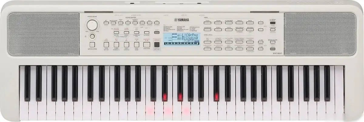 Синтезатор Yamaha EZ-310 — это удобный инструмент для начинающих и любителей музыки. Он оснащён 61 клавишей с подсветкой и чувствительностью к касанию, что помогает учиться и играть удобно. Благодаря 48 голосам и 650 тембрам вы можете создавать разные звучания и музыку в стиле. Модель включает функцию автоматического аккомпаниемента и арпеджиатор, чтобы делать музыку ярче и интереснее. Можно записывать до 5 песен и использовать разделение клавиатуры для игры в разных регистрах. Темп регулируется в диапазоне 11–280 bpm, а также есть транспонирование и цифровые эффекты, такие как реверб и хорус. Встроенная акустика мощностью 2x2,5 Вт обеспечивает достойный звук, а дисплей помогает управлять настройками. USB интерфейс и возможность воспроизведения формата SMF делают работу с устройством удобной.