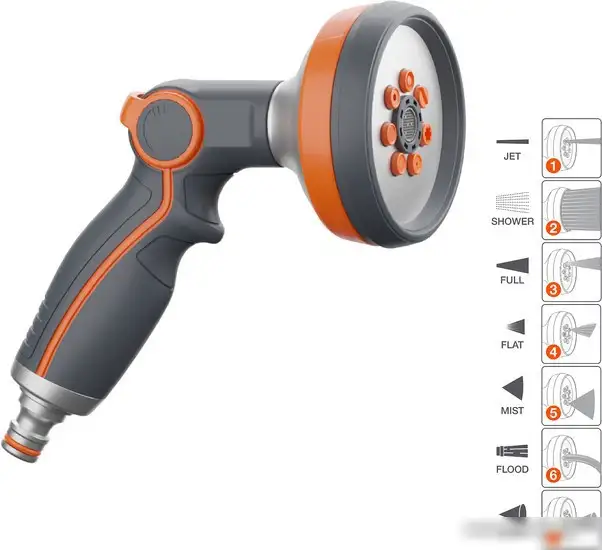 распылитель пистолет, 7 режимов, металл/пластик, с регулировкой расхода, с регулировкой дальности
