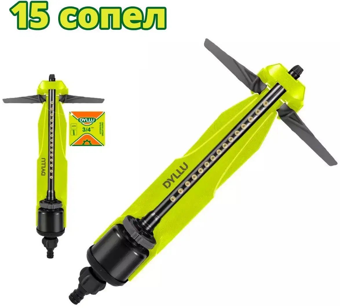 Распылитель Dyllu DTSN1E15 — это осциллирующий тип, который хорошо подходит для полива садов и газонов. Он не имеет встроенного контроллера, поэтому его нужно настраивать вручную. Распылитель способен покрыть площадь до 205 квадратных метров, что подходит для больших участков. Он равномерно распыляет воду, помогая обеспечить полноценный уход за растениями. Прост в использовании и легко настраивается. Такой распылитель — хорошее решение для регулярного поддержания влажности на участке.