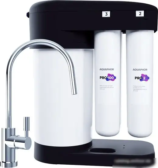 Система обратного осмоса АКВАФОР DWM-102S Pro предназначена для очистки питьевой воды. В комплект входят 4 фильтра, которые удаляют примеси, хлор, металлы и вирусы, делая воду безопасной для питья. Она подходит для дома и обеспечивает качественную воду без запаха и посторонних примесей. В системе есть краник для удобства использования, а также она занимает немного места. Ее можно подключить к водопроводу, и она не требует помпы для работы.