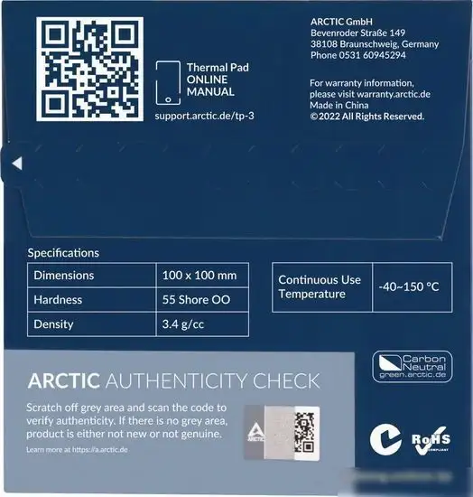 Термопрокладка Arctic TP-3 размером 100x100 мм и толщиной 1,5 мм подходит для использования в условиях от -40 до +150 °C. Она помогает улучшить теплоотвод и защитить электронные компоненты от перегрева. Легко устанавливается и подходит для различных устройств. Эта прокладка обеспечивает надежное контактное соединение и уменьшает тепловые потери. Так как она выполнена из качественного материала, она долго сохраняет свои свойства. Простая в использовании, она подходит для ремонта и сборки электроники. В комплект входит одна термопрокладка, что удобно для замены или установки. Arctic TP-3 совместима с различными радиаторами и корпусами. Ее размеры и характеристики позволяют применять ее в самых разных технических задачах.