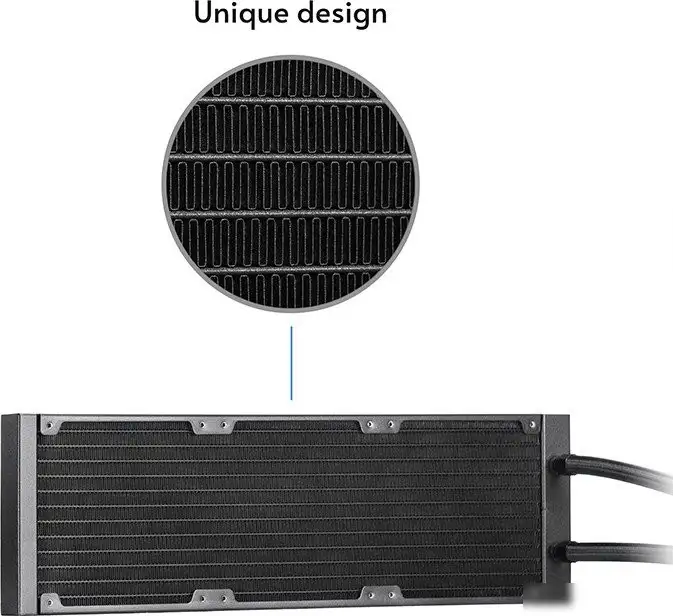 типоразмер 360, высота 52 мм, вентилятор 120 мм, прямое направление потока, 2200 об/мин, PWM, подшипник гидродинамический (FDB), ARGB подсветка, макс. шум 34.7 дБ