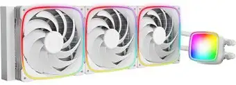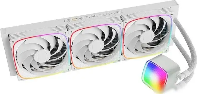 Система жидкостного охлаждения Geometric Future Eskimo Pro 42 (белый) обеспечивает эффективное охлаждение процессора с помощью замкнутого контура (AIO). Она совместима с разными сокетами, такими как AM4, AM5, LGA1700 и другими, что делает её универсальной для различных современных плат. В системе используются три вентилятора диаметром 140 мм с гидродинамическим подшипником, которые создают мощный поток воздуха до 91.15 CFM и работают при скорости до 2 400об/мин. Вентиляторы управляются по PWM, что позволяет регулировать скорость и снижать шум до 34 дБ. В водоблоке установлен керамический насос, обеспечивающий стабильную работу и высокий уровень охлаждения, а радиатор выполнен из алюминия для легкости и эффективности теплоотвода. В комплект входят крепления, термопаста и аппликатор, что упрощает установку. Благодаря подсветке ARGB с управлением по 3-pin, устройство можно настроить под любой дизайн ПК. Обладает низким уровнем шума и компактными размерами, что удобно для сборки в различных системных корпусах.