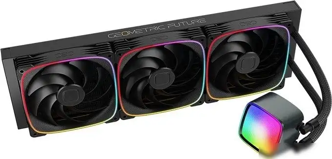 Система жидкостного охлаждения Geometric Future Eskimo Pro 42 предназначена для эффективного охлаждения процессора. Она имеет замкнутый контур (AIO) с жидкостным методом охлаждения и подходит для различных сокетов, включая AM4 и LGA1200. Радиатор выполнен из алюминия и имеет размер 420 мм, что обеспечивает хорошую теплоотдачу, а трубка длиной 0.45 м позволяет легко установить устройство. В комплекте идут три вентилятора диаметром 140 мм с гидродинамическим подшипником, регулируемые по скорости до 2400 об/мин для снижения шума, который не превышает 34 дБ. Вентиляторы подключаются через 4-pin PWM для автоматической регулировки скорости и ARGB-подсветкой, создающей эстетику. Водоблок выполнен из меди с керамическим подшипником, что обеспечивает долговечность, и не имеет встроенного дисплея. Размеры системы составляют 456×140×52 мм, и она весит вполне приемлемо. В комплект входят крепления, термопаста, аппликатор и кабель для цепочечного подключения вентиляторов. Эта система помогает поддерживать низкую температуру процессора и снижает уровень шума во время работы.
