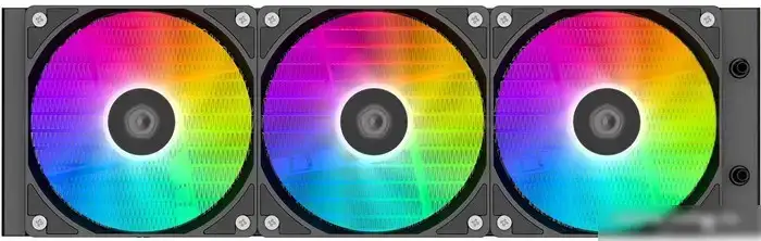 типоразмер 360, рассеивание до 350 Вт, высота 27 мм, макс. шум 35.2 дБ, вентилятор 120 мм, 1800 об/мин, PWM, подшипник гидродинамический (FDB), ARGB подсветка