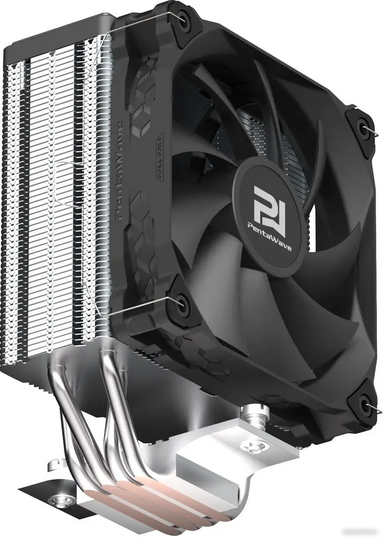 Кулер для процессора PentaWave PC-Z04E SRB выполнен в классическом серебристом и черном цвете и подходит для различных сокетов, таких как AM4, AM5, LGA1200 и другие. Он эффективно охлаждает процессор с поддержкой TDP до 220 Вт, что обеспечивает стабильную работу системы. Конструкция кулера выполнена из алюминия и оснащена четырьмя тепловыми трубками, что ускоряет отведение тепла. В комплекте есть один вентилятор диаметром 120 мм с гидродинамическим подшипником, который работает с максимально скоростью 1850 об/мин и создает воздушный поток до 86.5 CFM. Управление скоростью вентилятора осуществляется по PWM, что позволяет снизить уровень шума до 32.6 дБ. Кулер имеет размеры 125x74x158 мм и весит 495 г, что легко интегрируется в корпус и не создает лишней нагрузки. Он предназначен для эффективного воздушного охлаждения и обеспечивает надежную работу процессора под высокой нагрузкой.