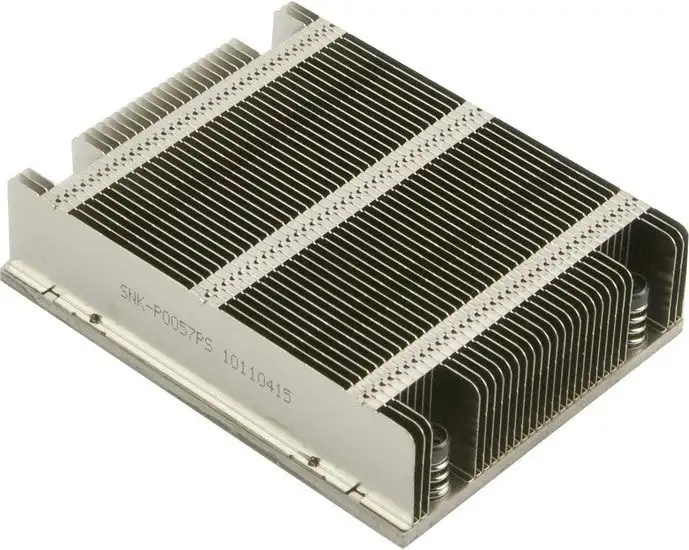 Кулер для процессора Supermicro SNK-P0057PS предназначен для пассивного охлаждения. Его можно монтировать в 19-дюймовую стойку в формате 1U, что удобно для серверных систем. Он подходит для сокета LGA2011-3 Narrow ILM и способен рассеивать до 145 Вт тепловой мощности. Радиатор сделан из алюминия, что обеспечивает хорошую теплоотдачу и долговечность. Этот кулер не имеет тепловых трубок или испарительных камер, что делает его простым и надежным. Он идеально подходит для серверов и оборудования с постоянной нагрузкой, требующего тихого охлаждения. Его компактный дизайн и простота установки помогают сэкономить место и упростить сборку системы.