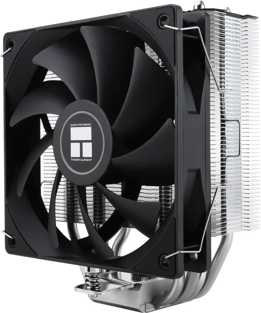 Этот кулер для процессора выполнен в черном цвете и имеет башенную конструкцию, которая помогает эффективно охлаждать центральный процессор. Он совместим с разными сокетами, включая AM4, AM5 и LGA1151, что обеспечивает широкие возможности установки на разные системы. Радиатор сделан из алюминия, а четыре тепловые трубки ускоряют передачу тепла от процессора. В комплект входит один вентилятор диаметром 120 мм с гидродинамическим подшипником, который вращается до 1500 об/мин и пропускает до 66.17 CFM воздуха, обеспечивая хорошую вентиляцию. Управление скоростью вентилятора происходит через PWM, он работает тихо — максимум 25.6 дБ. Размеры кулера — 120x71x154 мм, а вес составляет 660 г, что делает его надежным и компактным. В комплекте идут крепления, термопаста и винты для быстрой установки. Такой кулер подходит для тех, кто хочет снизить температуру процессора и обеспечить его стабильную работу.
